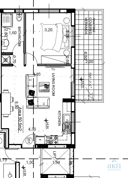 For sale is a modern, off-plan apartment located on the second floor of a four-story development in Paralimni. This property offers an internal space of 50.5 square meters, featuring one spacious bedroom and one well-designed bathroom. The apartment boasts a contemporary layout, allowing plenty of natural light throughout the open living area.